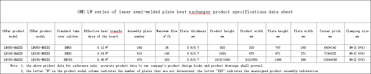 Ougege LW series of laser semi-welded plate heat exchanger product specifications data sheet