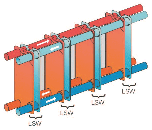 江蘇歐邁格LSW系列半焊板式換熱器在工作過程可以保證流道間的隔離,臨界媒質在焊接密封后的流道中流動,將熱傳給另一側的普通媒介,沒有這種嚴格隔離設計,許多工業過程將無法實現。
